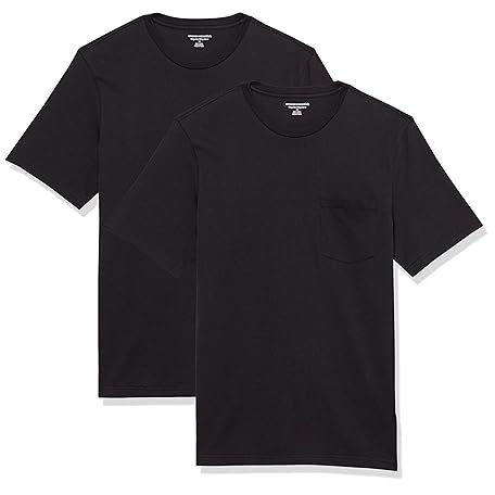 • Amazon Essentials Mens T-Shirts, Regular-Fit, Short-Sleeve Crewneck Pocket, Pack of 2