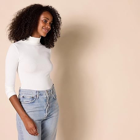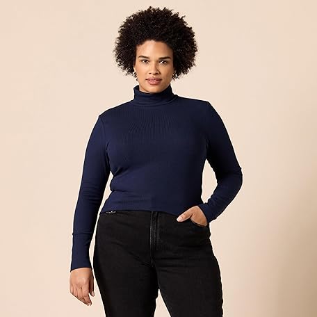 • Amazon Essentials Women's Slim-Fit Layering Long Sleeve Knit Rib Turtleneck Top (Available in Plus Size), Pack of 2