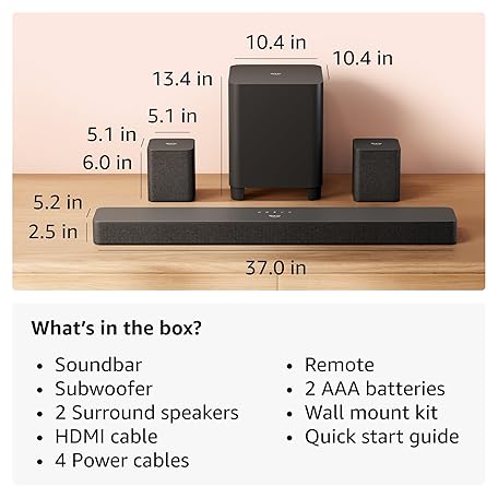 Thông tin sản phẩm Amazon Fire TV Soundbar Plus with subwoofer and surround sound speakers (newest model), 5.1 channel, Dolby Atmos, clear dialogue