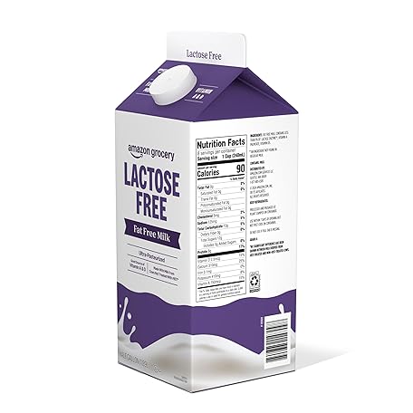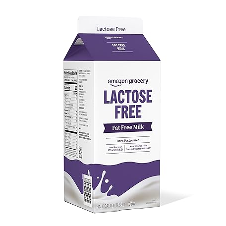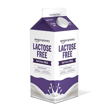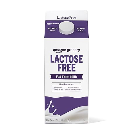 Amazon Grocery, Lactose Free Fat Free Milk, Half Gallon, 64 Fl Oz (Previously Happy Belly, Packaging May Vary)