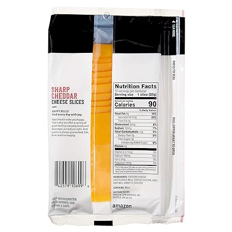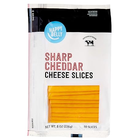 Thông tin sản phẩm Amazon Grocery, Sharp Cheddar Cheese, Sliced, 8 Oz, 10 Slices (Previously Happy Belly, Packaging May Vary)