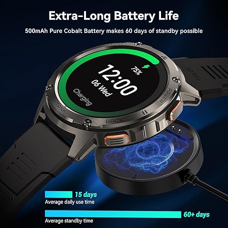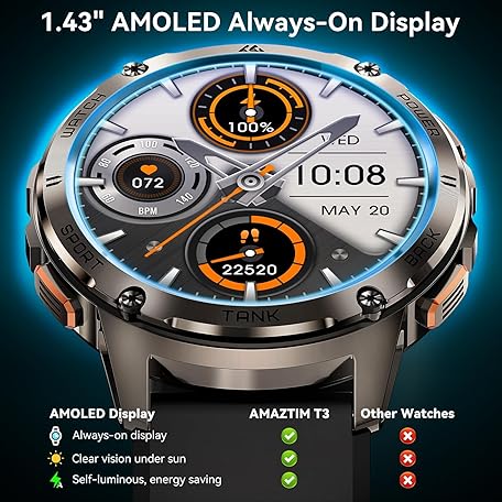 Thông tin sản phẩm AMAZTIM Smart Watches for Men,60 Days Extra-Long Battery, Rugged Military Bluetooth Call(Answer/Dial Calls),1.43" Ultra HD AMOLED Display,Full Metal Body SmartWatch Compatible iPhone and Android