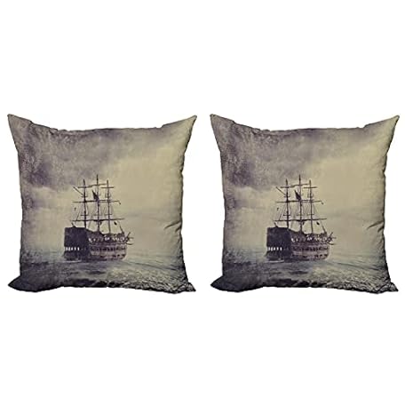 Ambesonne Nautical Decorative Throw Pillow Case Pack of 2, Old Pirate Ship in The Sea Historical Cruise Retro Voyage Grunge Style Art, Couch Bedroom Living Room Cushion Cover, 20", Plum Tan