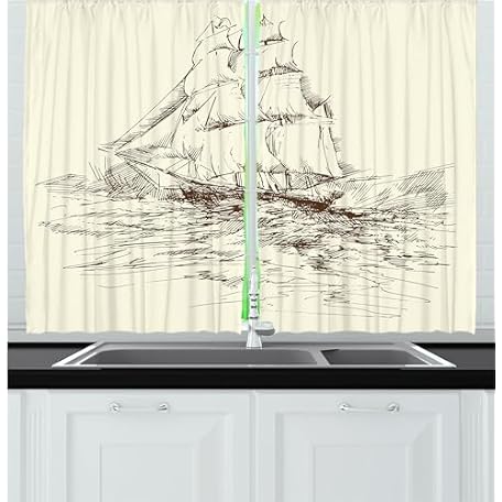 Ambesonne Nautical Kitchen Curtains, Hand Drawn Sailboat Struggling in Ocean Wave Destination Historical Voyage Image, Window Drapes 2 Panel Set for Kitchen Cafe Decor, 55" x 36", Ivory Brown