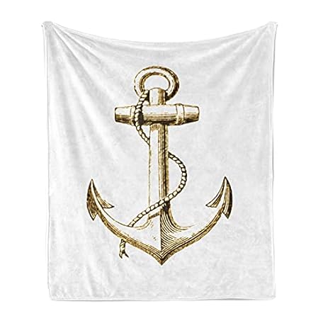 Ambesonne Nautical Throw Blanket, Foil Anchor Image Be Safe and Grounded Voyage Journey Adventure Fisherman, Flannel Fleece Accent Piece Soft Couch Cover for Adults, 70" x 90", Yellow and Black