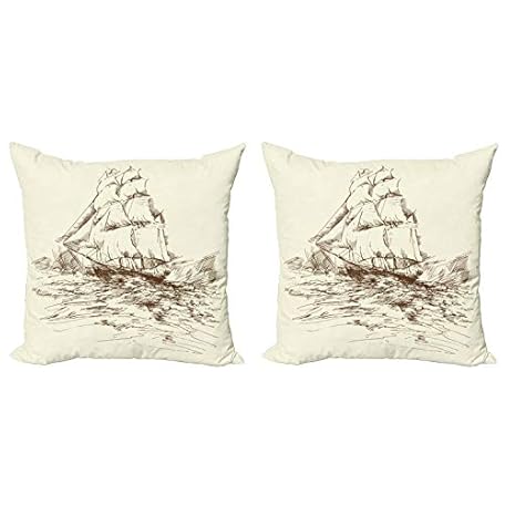 Ambesonne Nautical Throw Pillow Cushion Cover Pack of 2, Hand Drawn Sailboat Struggling in Ocean Wave Destination Historical Voyage Image, Zippered Double-Side Digital Print Decor, 20", Ivory Brown