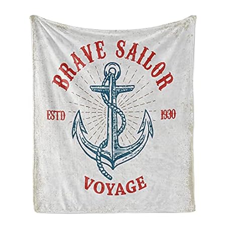 Ambesonne Vintage Nautical Tattoo Throw Blanket, Anchor Maritime Voyage Art, Flannel Fleece Accent Piece Soft Couch Cover for Adults, 70" x 90", Coconut Vermilion