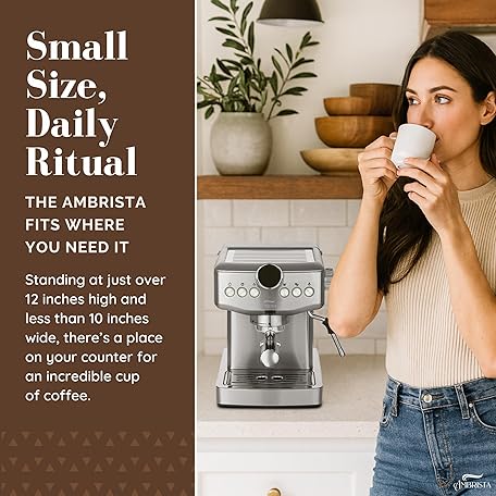 Thương hiệu AMBRISTA là cái tên nổi tiếng được rất nhiều khách hàng trên thế giới chọn lựa. Với kiểu dáng đẹp mắt, sang trọng, sản phẩm AMBRISTA Espresso Machine 20 Bar with Steam Milk Frother | Stainless Steel Espresso Maker with Customizable Brewing Temperature | 60oz Removable Water Tank | Perfect for Cappuccinos, Lattes and More là sự lựa chọn hoàn hảo nếu bạn đang tìm mua một món cho riêng mình.