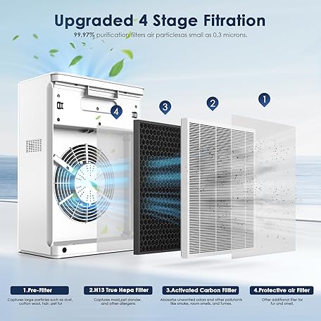Thông tin sản phẩm AMEIFU Air Purifiers for Home Large Room up to 2000sq.ft, H13 True Hepa Air Purifiers for Pets Hair, Dander, Smoke, Pollen, 3 Fan Speeds, 5 Timer Air Cleaner