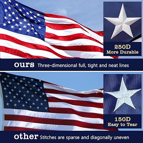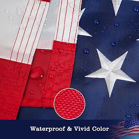 American Flags for Outside 3 x 5 FT, 100% Polyester Heavy Duty US Flag for High Wind Outdoor, Fade Resistant & Waterproof USA Flag with Embroidered Stars, Sewn Stripes, Brass Grommets