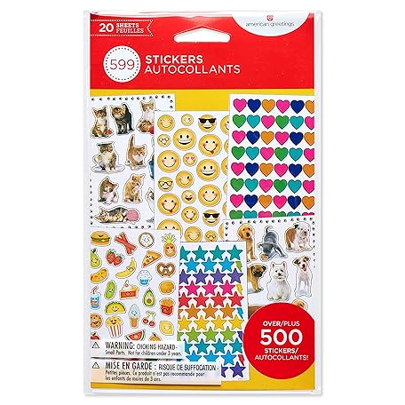 Thông tin sản phẩm American Greetings Stickers for Kids, Assorted Shapes, Animals and Smiley Faces (599 Stickers)