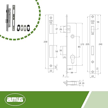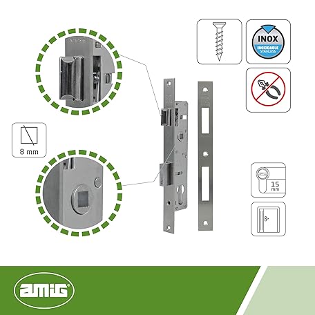 • Amig - Mortise Lock for Metal Carpentry Mod. 720E | 22 mm | For 15 mm Europrofile Cam Cylinder | Reversible Handle | Stainless Steel