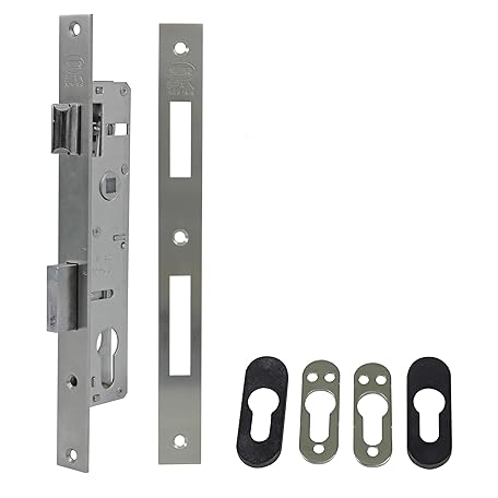 Amig - Mortise Lock for Metal Carpentry Mod. 720E | 22 mm | For 15 mm Europrofile Cam Cylinder | Reversible Handle | Stainless Steel