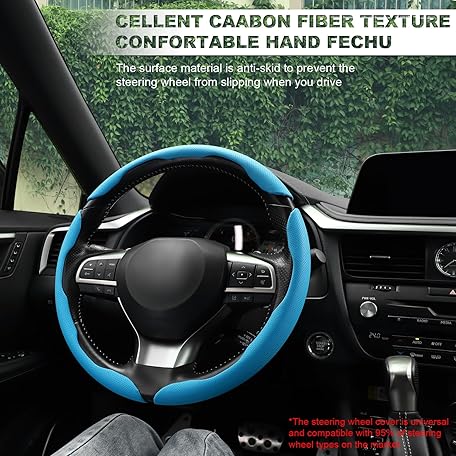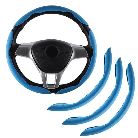Amiss Nappa Leather Steering Wheel Cover, 3PCS Segmented Steering Wheel Protector, Universal 99% Car Wheel Cover Protector (Blue)