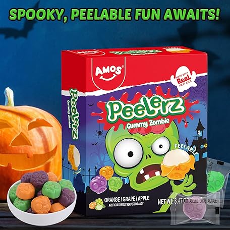 Sản phẩm AMOS Halloween Peelerz 4D Zombie Gummy Candy Treats - Chewy & Tangy Individually Wrapped Gummies for Kids Parties Trick or Treat - Pack 240g (8.47oz) đang được bán với giá ưu đãi là $17.876 tại nước Mỹ.