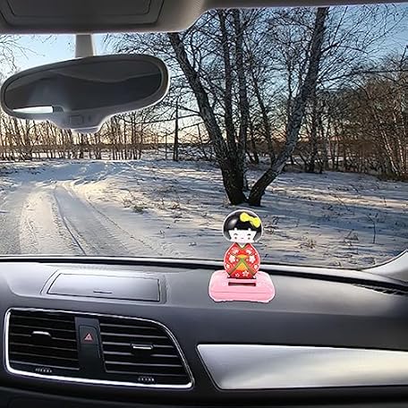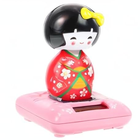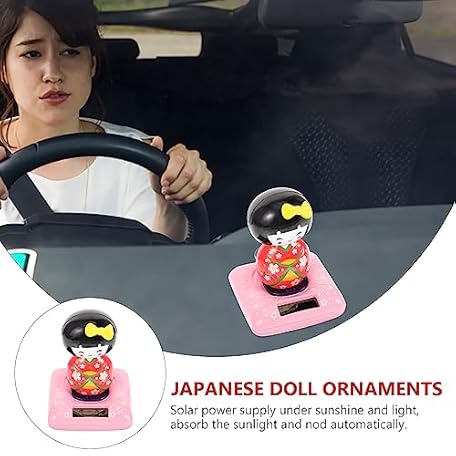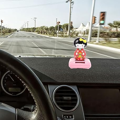 • Amosfun Solar Powered Kimono Doll Car Ornament Japanese Maiko Nodding Bobblehead Dashboard Decor 4.33 Inch Car Interior