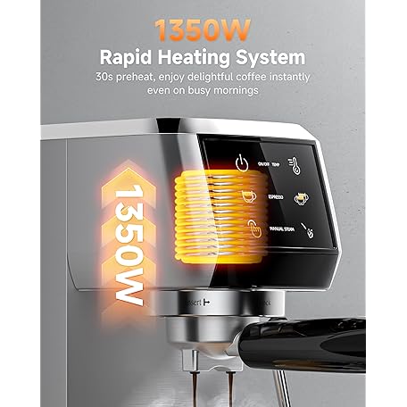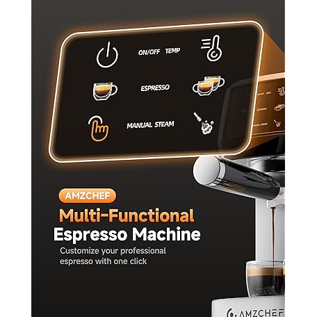 AMZCHEF Espresso Machine 20 Bar – Professional Coffee Maker with Milk Frother, Adjustable Temperature & Pressure, Compact Stainless Steel Espresso Maker for Cappuccino, Latte, Mocha, 44oz Water Tank