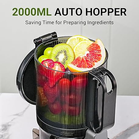 Thông tin sản phẩm AMZCHEF Juicer Machines, 5.3" Extra Self-Feeding Cold Press Juicer for Whole Vegetable & Fruit, Juice Extractor Machine with Large Auger & Triple Strainers, Easy to Clean, High Juice Yield, Grey