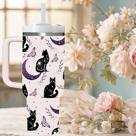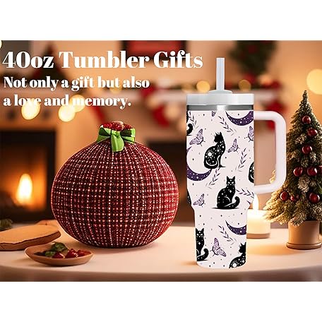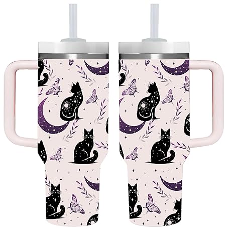 • AMZUShome 40 OZ Goth Cat Tumbler with Handle.Unique Birthday Christmas Gifts for Goth Lover.Personalized 40 OZ Goth Cat Tumbler Gifts for Women Men.