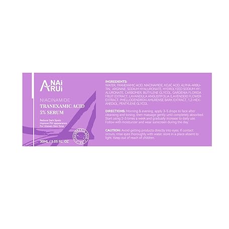Thông tin sản phẩm ANAI RUI 5% Tranexamic Acid Serum With Niacinamide, Kojic Acid, Arbutin, Reduce Dark Spot, PIH, for Uneven Skin Tone 1FL.Oz