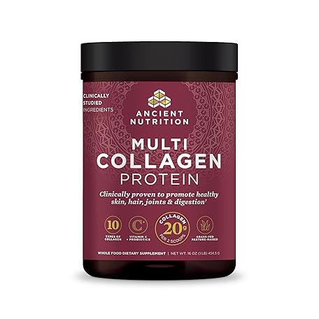 Thông tin sản phẩm Ancient Nutrition Collagen Powder Protein with Probiotics, Unflavored Multi Collagen Protein with Vitamin C, 45 Servings, Hydrolyzed Collagen Peptides Supports Skin and Nails, Gut Health, 16oz