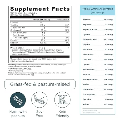 Thông tin sản phẩm Ancient Nutrition Grass Fed Whey Protein, Chocolate Peanut Butter, 23g Protein, 18 Servings, Hydrolyzed Collagen Peptides, Organic Regenerative A2/A2 Milk Protein