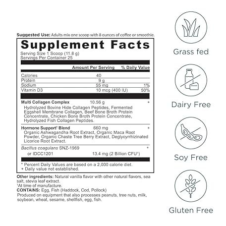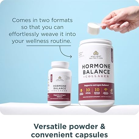 Ancient Nutrition Hormone Balance + Collagen Powder Supplement, Hydrolyzed Collagen Peptides, Key Clinically Validated Ingredient to Support Balanced Hormones and Boost Energy, Vanilla, 25 Servings