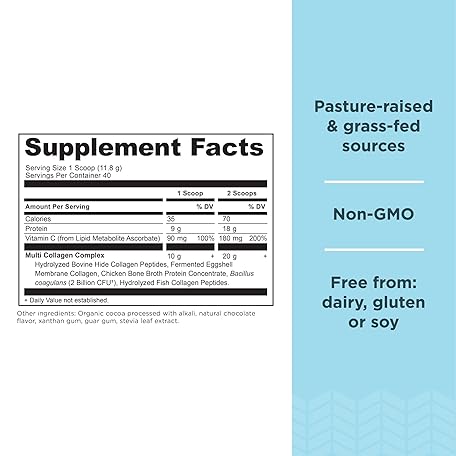Thông tin sản phẩm Ancient Nutrition Hydrolyzed Collagen Peptides Powder with Probiotics, Chocolate Multi Collagen Protein for Women and Men with Vitamin C, 40 Servings, Supports Skin and Nails, Gut Health, 16.65oz
