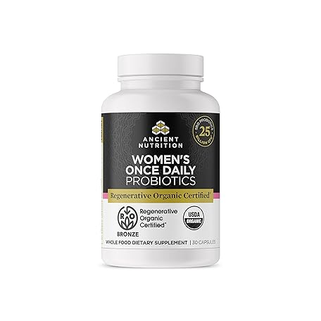 Ancient Nutrition Regenerative Organic Certified Probiotics for Women, Probiotics Women’s Once Daily, for Healthy Digestion and Immune System Function Support, 25 Billion CFUs* Per Serving, 30 Count