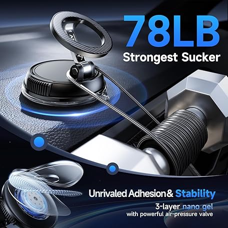 Thông tin sản phẩm ANDERY Car Phone Holder for Magsafe [78+LBS Strongest Suction & 2400gf Magnetic] 360° Adjustable Car Phone Mount, Phone Holders for Your Car for iPhone 17 Pro Max 16 15 14 13 12 Air Plus, Carbon Fiber