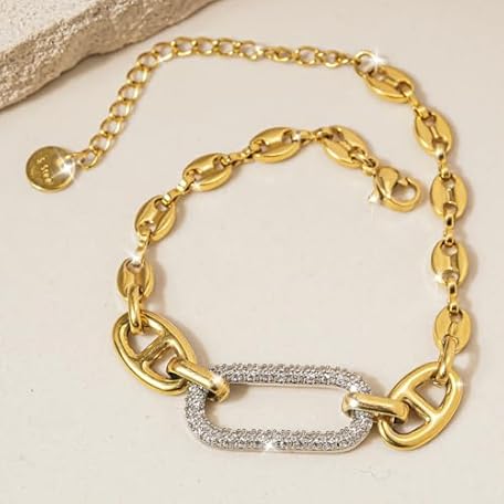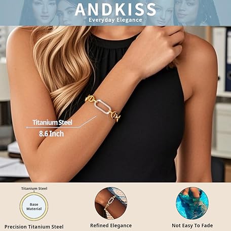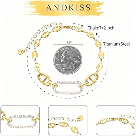 Thông tin sản phẩm ANDKISS 18K Gold Bracelets for Women, Adjustable Waterproof Non-Tarnish Titanium Chain with Pavé AAA+ CZ Accent, Dainty Gold Plated Paperclip Bracelet Jewelry Christmas Gifts