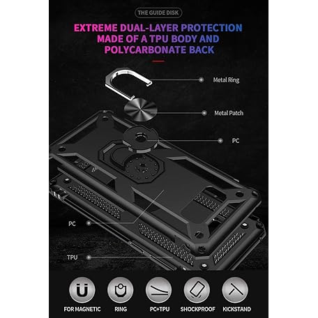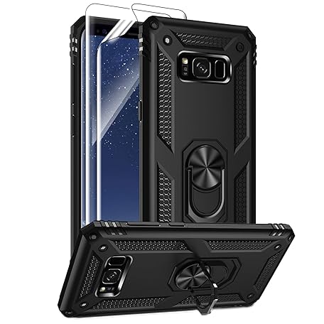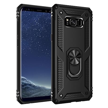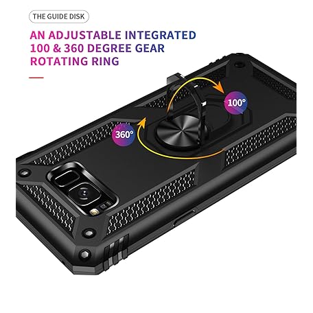 Thông tin sản phẩm Androgate for Samsung Galaxy S8 Plus Case with HD Screen Protectors, Military-Grade Metal Ring Holder Kickstand 15ft Drop Tested Shockproof Cover Case for Samsung Galaxy S8+ (2017) Black