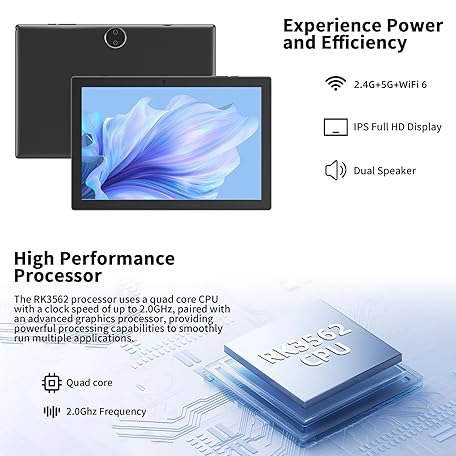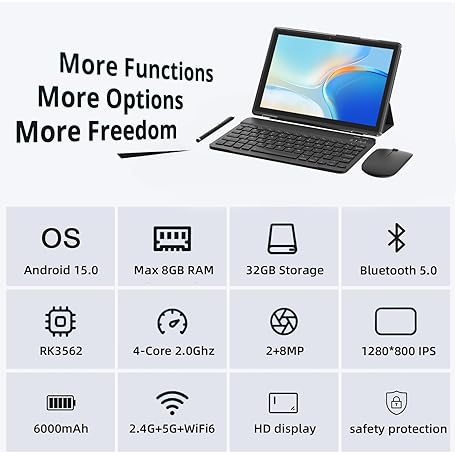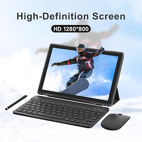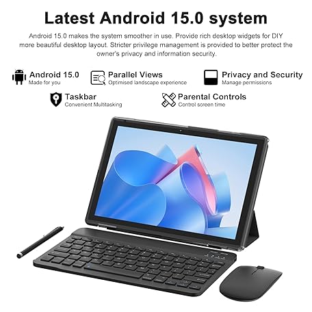 Thông tin sản phẩm Android 15 Tablets 10 Inch, 2 in 1 Tablet with Keyboard Case, 8GB+32GB ROM/1TB, Quad Core, HD Touch Screen, Dual Carema, Games, Wi-Fi, BT, Google GMS Black