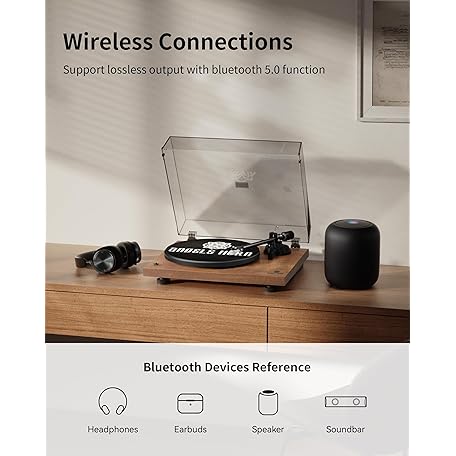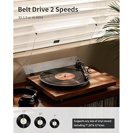 Thông tin sản phẩm ANGELS HORN Turntable, Vinyl Record Player, Built-in Phono Preamp, Belt Drive 2-Speed, Adjustable Counterweight, AT-3600L (Upgraded Bluetooth Version)