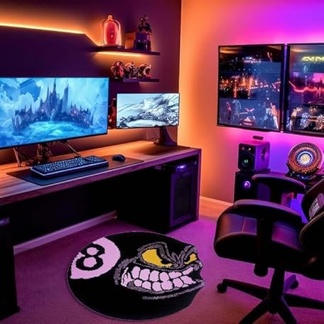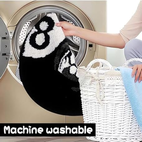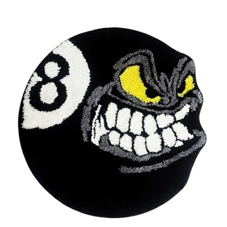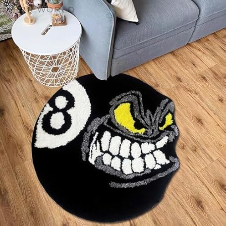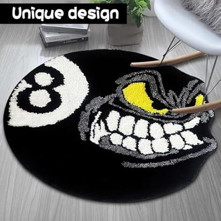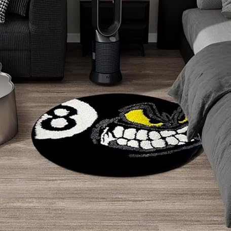 Angry 8 Ball Rug, 24" Cool Rugs for Bedroom Men, Black Round Area Rug for Man Cave, High-Pile Flocking Soft Aesthetic Carpet for Living Room Decor, Hypebeast Room Decor