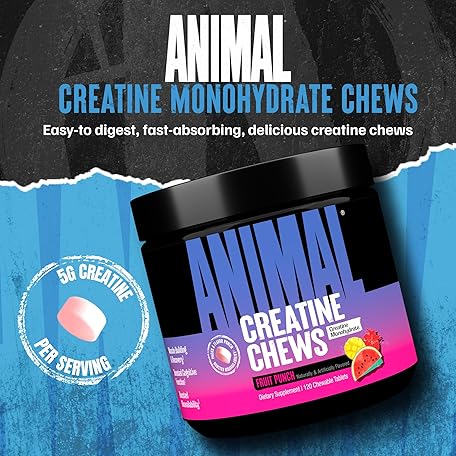 Sản phẩm Animal Creatine Chews Tablets - Enhanced Creatine Monohydrate with AstraGin to Improve Absorption, Sea Salt for Added Pumps, Delicious and Convenient Chewable Tablets - Fruit Punch đang được bán với giá ưu đãi là $32.6782 tại nước Mỹ.