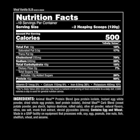 Thông tin sản phẩm Animal Meal - Protein Shake with Whole Food Ingredients, Aids in Muscle Recovery with Egg White, Beef & Pea Protein Blend, Vanilla Flavor, 5 lbs