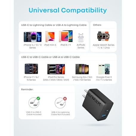 Sản phẩm Anker iPhone 17/16 Charger, 2-Pack 20W Fast USB C Charger Block, for iPhone 16/16 Pro Max/15 Series/iPad Pro and More (Black, 2 Pack & 2 Cable) đang được bán với giá ưu đãi là $17.4291 tại nước Mỹ.
