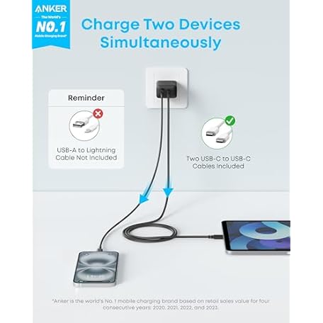 Thông tin sản phẩm Anker iPhone 17/16 Charger, 2-Pack 20W Fast USB C Charger Block, for iPhone 16/16 Pro Max/15 Series/iPad Pro and More (Black, 2 Pack & 2 Cable)