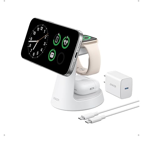 Thông tin sản phẩm Anker MagSafe Charger Compatible, MagGo 3-in-1 Charging Station, Nano Charging Stand, Qi2 Certified 15W Magnetic Wireless Charger Dock, for iPhone17/16/15/14, Apple Watch,AirPods (Adapter Included)
