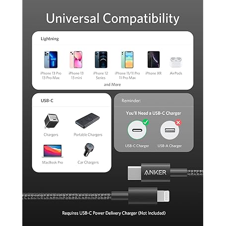 Thông tin sản phẩm Anker New Nylon USB C to Lightning Cable, Apple MFi Certified for iPhone 14 Series, and More (1FT, Black)