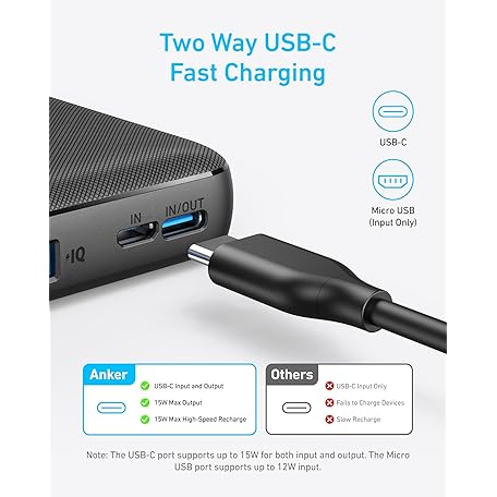 Thông tin sản phẩm Anker Power Bank(PowerCore 10K), Compact Travel-Ready 10,000mAh Battery Pack with PowerIQ Charging Technology, 5V/3A High-Speed Charging for iPhone, iPad,and More(USB-C Input and Output(Black), 1pack)