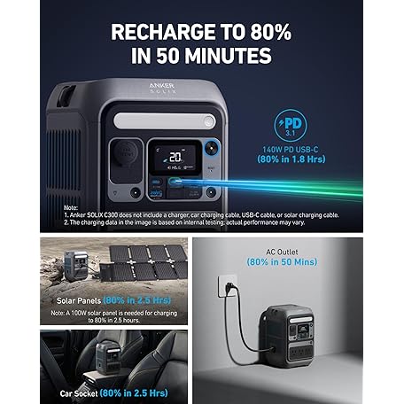 Anker SOLIX C300 Portable Power Station, 288Wh LiFePO4 Battery, 300W (600W Surge) Solar Generator, 140W Two-Way Fast Charging, with NEBULA X1 Triple Laser 4K Projector