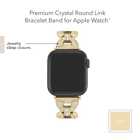 Anne Klein Premium Crystal Accented Fashion Bracelet for Apple Watch, Secure, Adjustable, Apple Watch Band Replacement, Fits Most Wrists