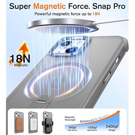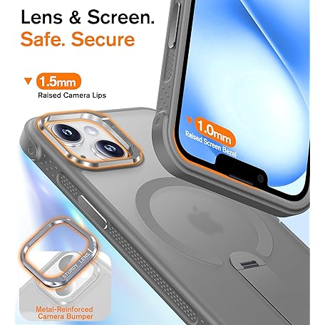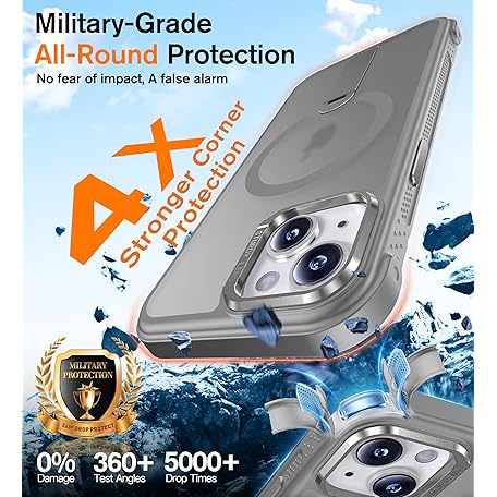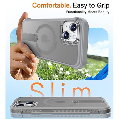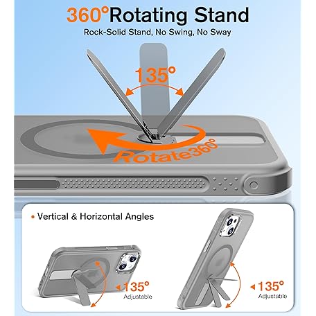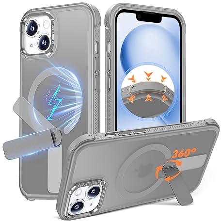 Anqrp 360° Rotatable Stand Magnetic Case for iPhone 14/13 with Adjustable Invisible Kickstand, [Compatible with Mag-Safe] [Mil-Grade Drop Protection] Translucent Matte Phone Case Cover 6.1" Gray