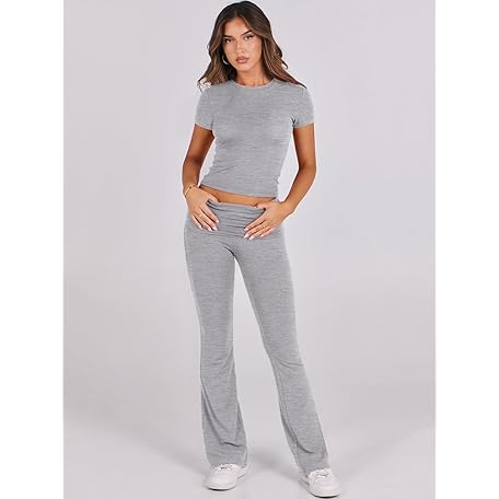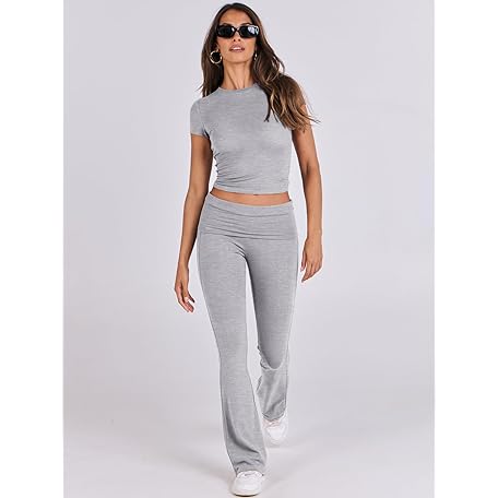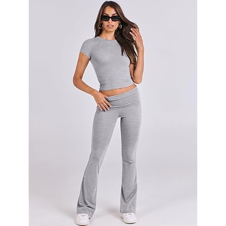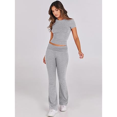 Sản phẩm ANRABESS Lounge Sets for Women 2 Piece Foldover Yoga Flare Leggings Pants Crop Tops Casual Y2K Outfits Matching Tracksuit Set đang được bán với giá ưu đãi là $21.7891 tại nước Mỹ.