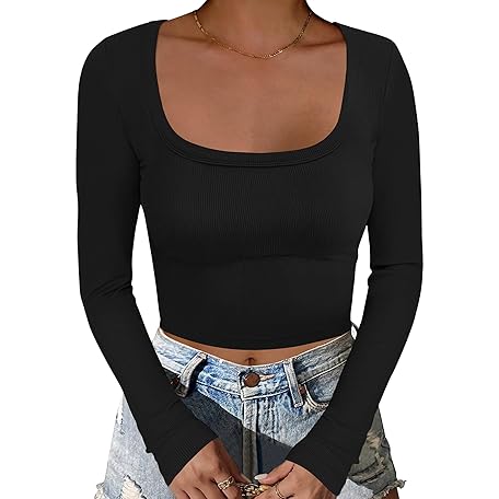ANRABESS Women's Long Sleeve Square Neck Crop Top Ribbed Slim Fitted Basic Tee Layer Y2K Shirts Fall Fashion Outfits 2025