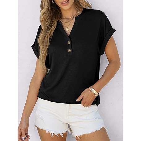 Sản phẩm ANRABESS Womens Short Sleeve Henley Tops V Neck Dressy Casual Blouses Summer Trendy Tee Shirts 2025 Vacation Fashion Clothes đang được bán với giá ưu đãi là $10.8891 tại nước Mỹ.