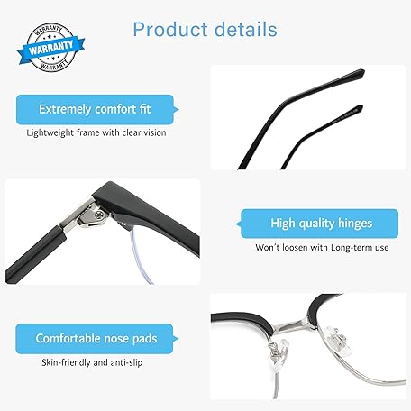 • ANRRI Blue Light Glasses for men Metal Browline Frame UV 400 Protection Clear Lens Anti Eyestrain Computer Gaming Glasses