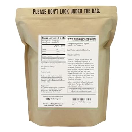 Thông tin sản phẩm Anthony's Collagen Peptide Powder, 1 lb, Pure Hydrolyzed, Gluten Free, Keto and Paleo Friendly, Grass Fed, Unflavored, Non GMO